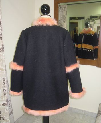 Abrigo de paño de lana, adornado con piel y telas y adornos de Afganistán