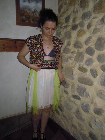Falda étnica confeccionada con telas de India y tul