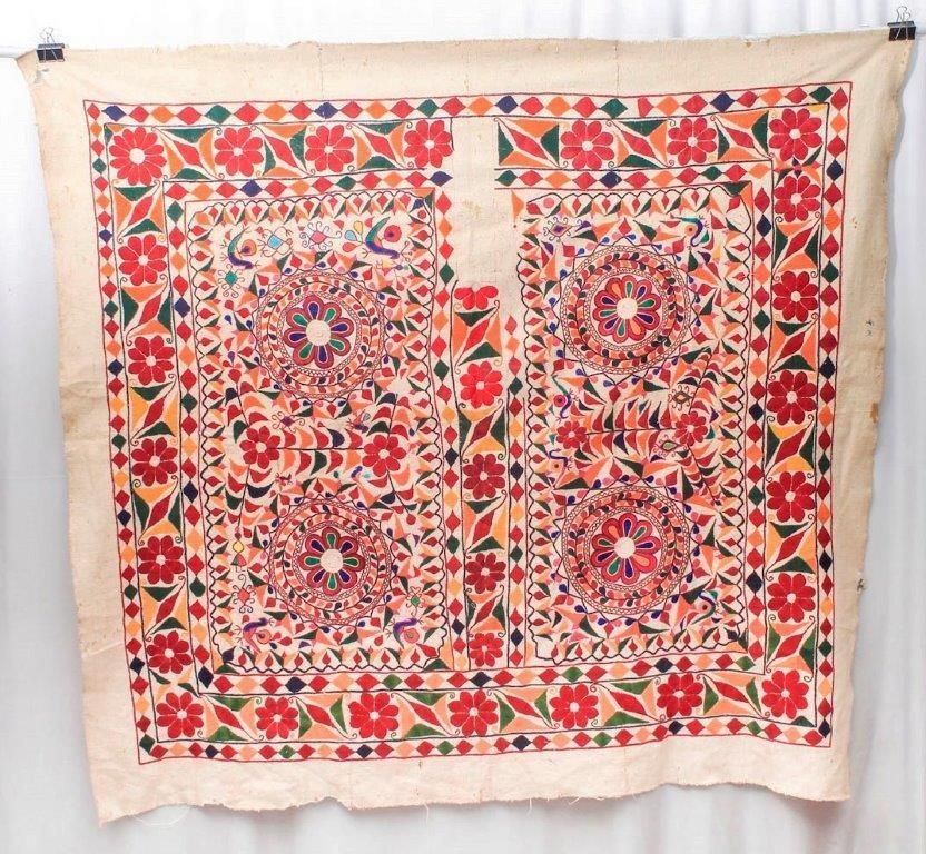 Tapiz de India étnico vintage con bordado banjara, medidas 1,78 x1,57 metros